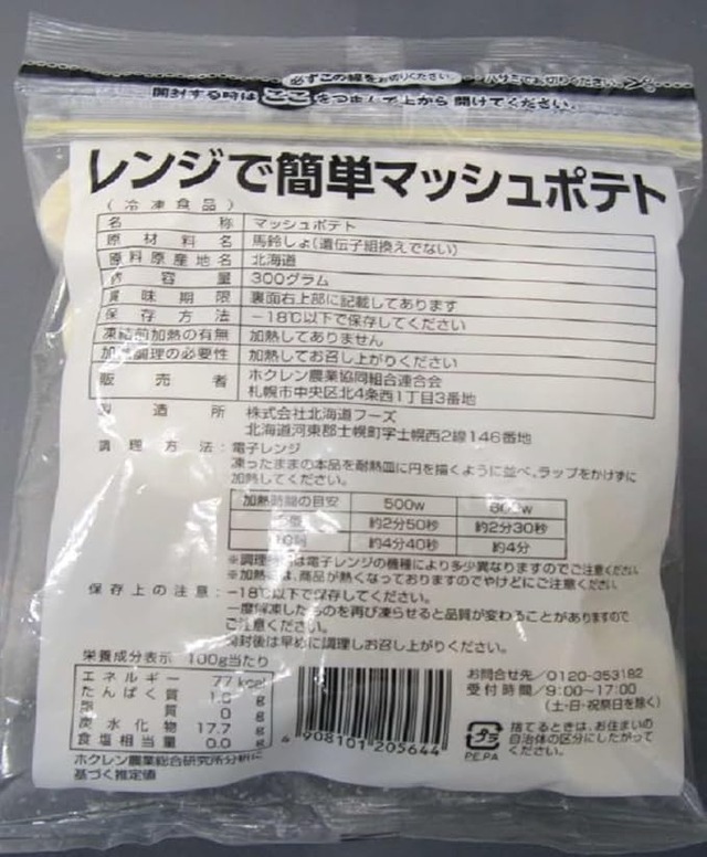 「冷凍」ホクレン レンジで簡単! マッシュポテト 300g×4