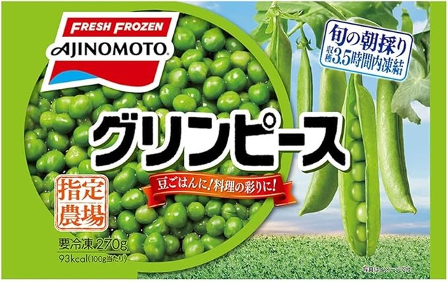 旬の時期の朝に収穫したグリンピースに限定し、収穫後3.5時間以内に急速凍結。やさしいお豆の甘みが味わえます 。