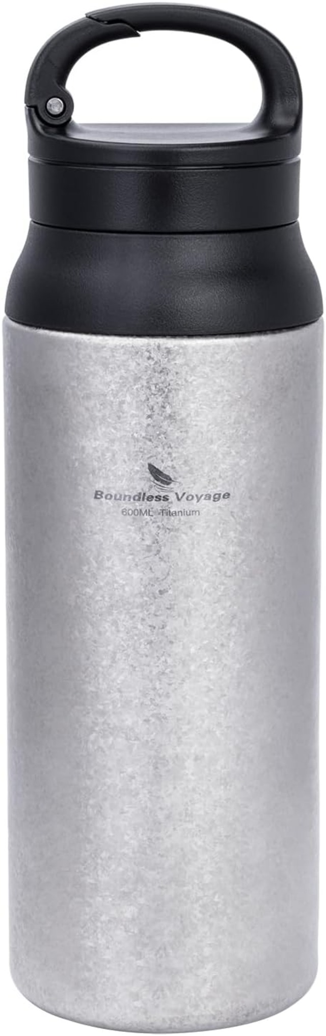 Boundless Voyage チタンボトル 水筒 二重構造 真空断熱 保冷 保温 600ml ボトル 軽量 丈夫 錆びない 抗菌 水筒 ハンドル付き 持ち運び コンパクトマグボトル 日常使用 アウトドア キャンプ用 Ti3010D a
