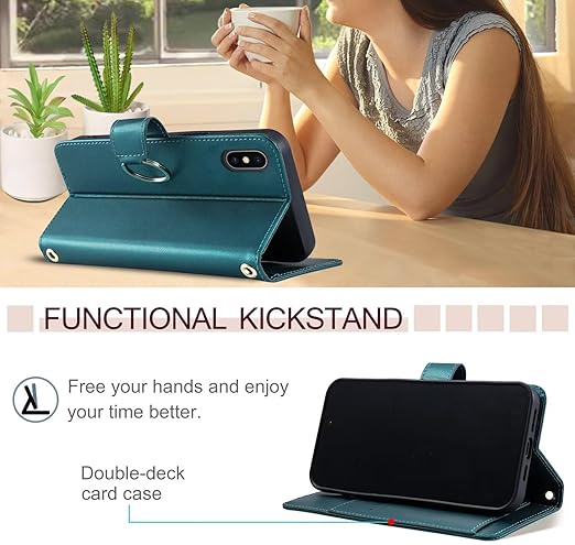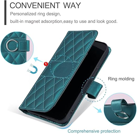 TEDTIKJT iPhone 16 ケース 手帳型 人気 iPhone 16 カバー 手帳 アイフォン16 スマホケース ケース手帳型 リングマグネットクラスプ付き iphone16 スマホケース レザー 耐衝撃 耐摩擦 全面保護 iPhone 16 6.1インチ 手帳ケース 複数のカードポケット収納 スタンド機能 手触りが良い 上質 -ダークグリーン a