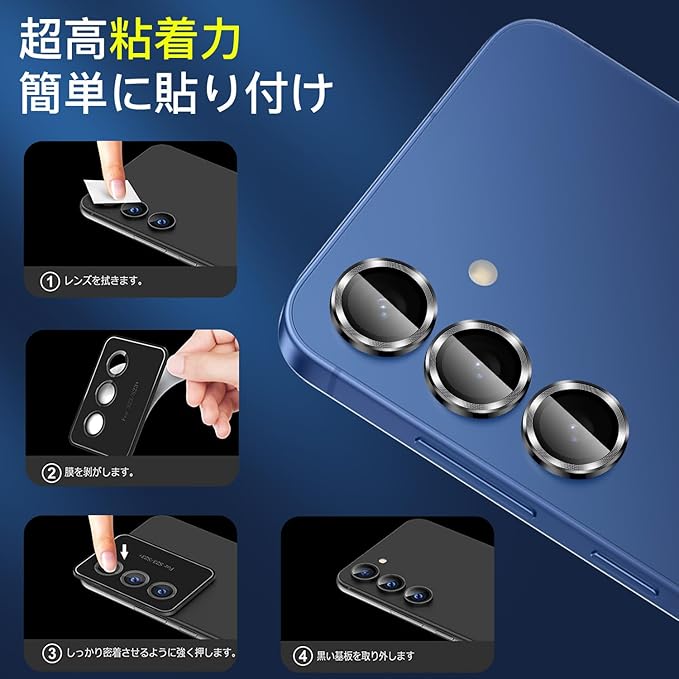 【対応機種・簡単に貼り付け】 対応 Galaxy S25 カメラフィルム 専用に設計されています。貼り付け面にナノ防水粘着層があり、凹面設計で密着性高いため、埃が入りにくい構造です。本体カメラを綺麗にしてから、保護シールを剥がし、レンズに合わせてはめこむように貼り付けて、しっかりとこすって密着させるだけで完了。貼った後に剥がれる心配もなく、長期間、快適に使用出来ます。
