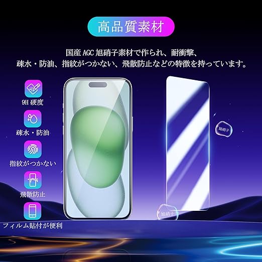 対応 iPhone 15 Plus フイルム ブルーライトカット ガイド枠付き 【2+2枚セッ- AGC旭硝子素材】 iPhone15 plus ガラスフイルム 【2枚】+ レンズフィルム 【2枚】 アイホン15 plus 液晶保護フィルム 強化ガラス さらさら レンズ保護フィルム ケース 【 硬度9H 耐衝撃 飛散防止 超薄 気泡ゼロ 高感度 撥油性 指紋防止 超耐久 ラウンドエッジ加工 】 a