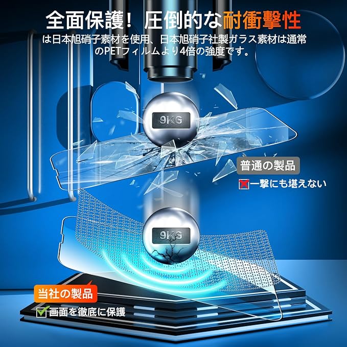 【飛散防止可能の9H硬度】 対応 アイフォン 16E ガラスフィルムとレンズ保護フィルムはすべて旭硝子で作られており、スマホ保護フィルムの中で最高レベルの9H硬度に達しています。手にフィットして持ちやすく滑りにくいので落ちにくいです。万が一落ちてもフィルムが衝撃を吸収してくれるので、スクリ