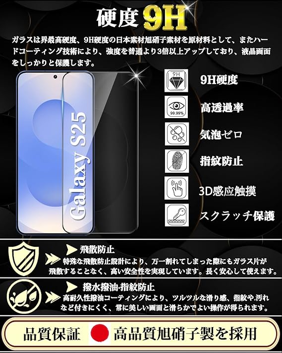 対応 Galaxy S24/ S25 ガラスフィルム 覗き見防止 ギャラクシーS24 / S25 液晶保護 フィルム 指紋ロック解除対応 【1枚入】旭硝子素材製 のぞき見防止 Galaxy S24/ S25 強化ガラス 硬度9H 耐衝撃 撥水撥油 SCG25 / SC-51E 飛散防止 簡単貼り付け 気泡なし a