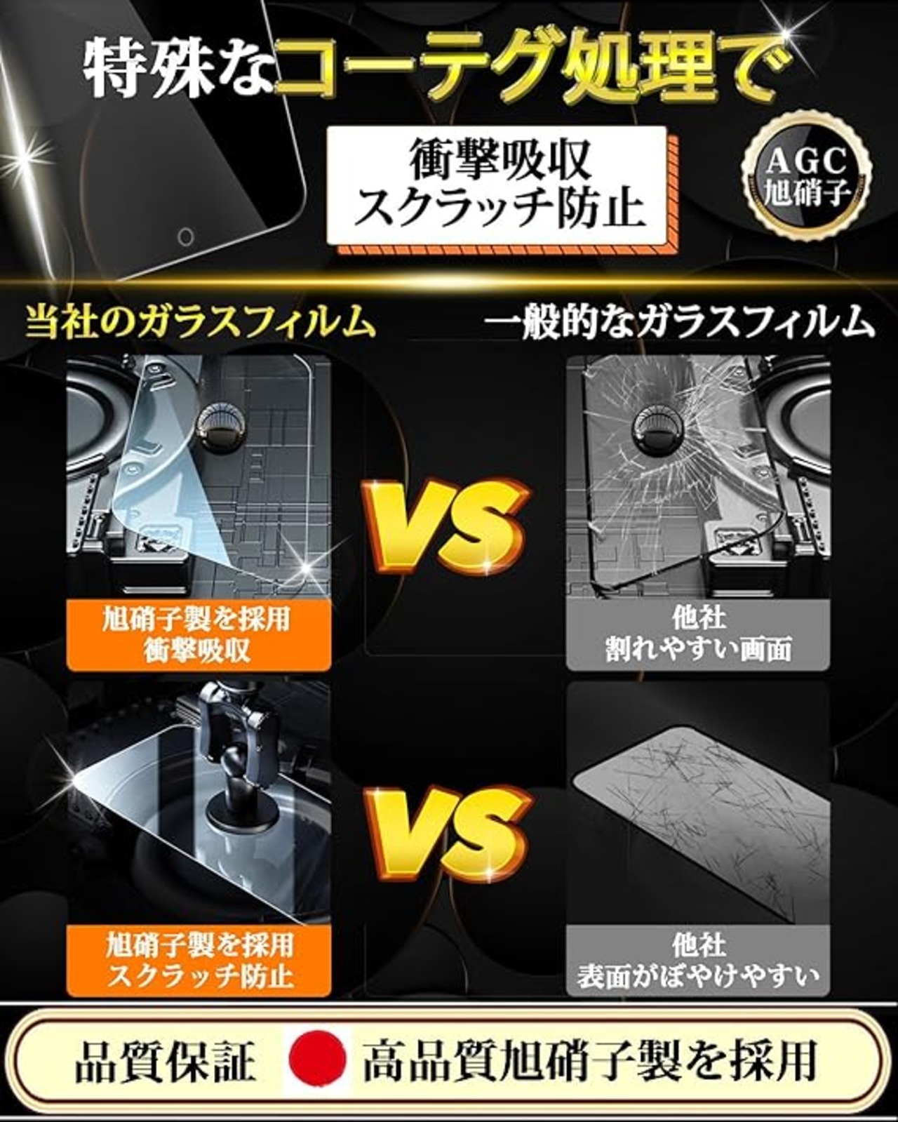 【指紋防止・撥水撥油】保護ガラス超薄デザインで、またフィルム表面に施された高耐久撥油コーティングにより表面の特殊なコーティングによって操作性はもちろん、指紋や油分から液晶画面を守ります。指紋に
