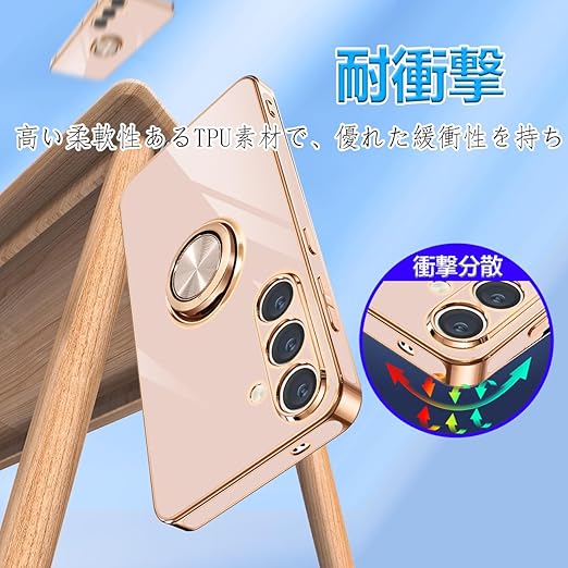 Galaxy S25 ケース リング ギャラクシーs25 SC-51F スマホケース リング付き 耐衝撃 TPU 携帯カバー シリコン スタンド機能付き 360回転車載ホルダー (ピンク) a