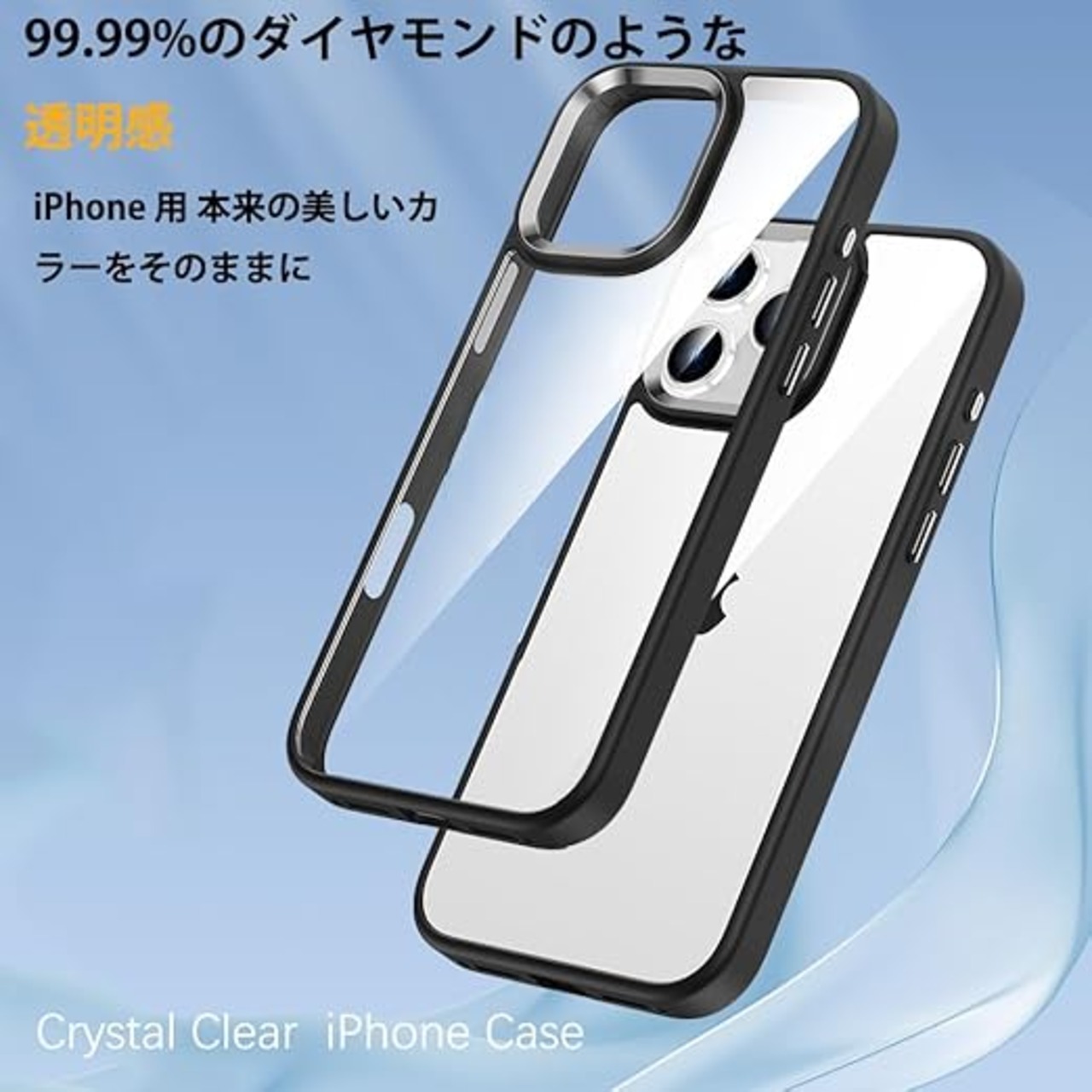 MuZiF iPhone 16 用 ケース クリア 薄型軽量 耐衝撃構造 黄変防止 擦り傷防止 透明 PC 背面クリア アイフォン16 用 カバー クリアケース(iPhone 16用,ブラック) a