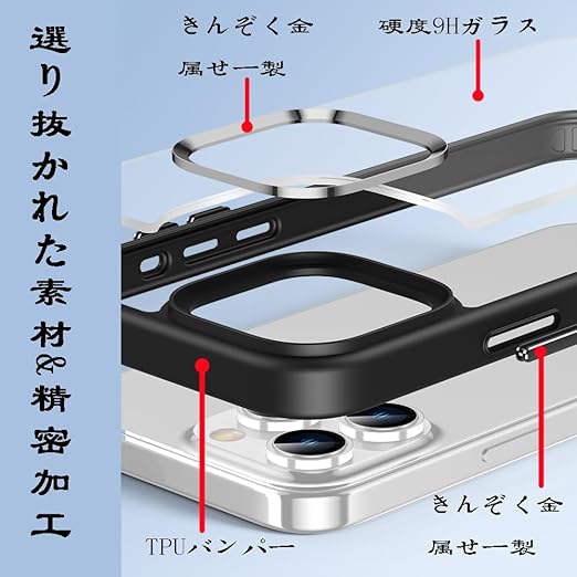 【超高耐衝撃性】背面は非常に硬いPC素材で作られています,高い耐衝撃性を持て、携帯電話を全方位からしっかりと守ります、 カメラレンズ周りは、1.5mm高く設計されており、レンズを摩擦や傷から保護します。