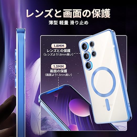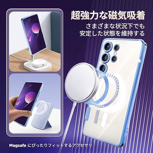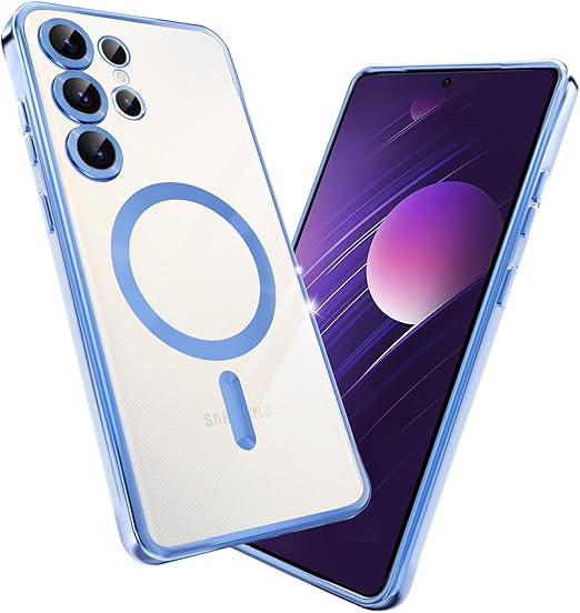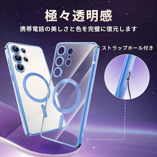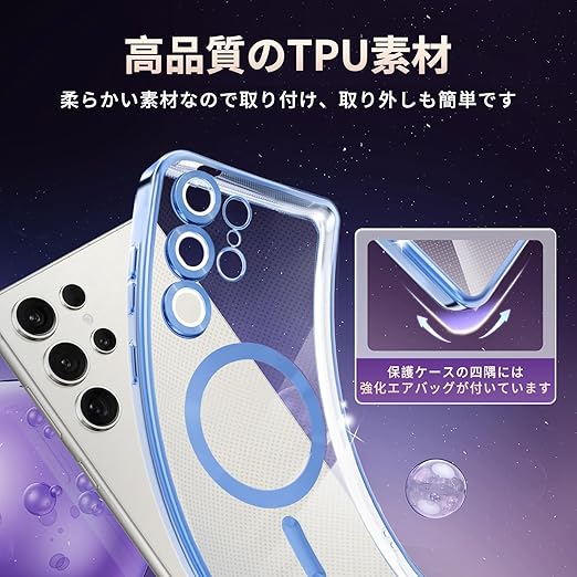 fagazzfu Galaxy S25 Ultra ケース クリア MagSafe対応 ギャラクシー S25 Ultra スマホケース 耐衝撃 傷防止の メッキ加工 SC-52F SCG32 カバー レンズ保護 TPU ソフト 薄くて 指紋防止 滑り止め 黄変防止 人気 (ブルー) a