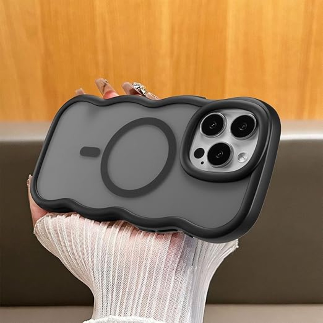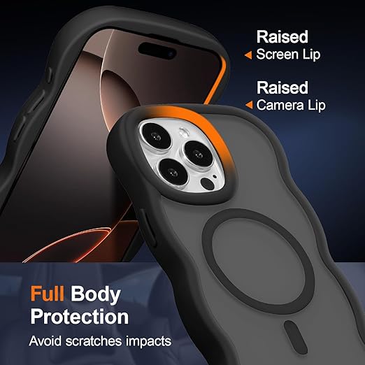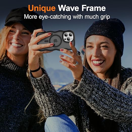 UEEBAI ケース 対応 iPhone 13 Pro 用の ケース 透明 TPU ウェーブデザイン スマホケース クリア可愛い おしゃれケース MagSafe対応 ワイヤレス充電対応 ケース 軽量 薄型 耐衝撃ケース 波状エッジケース 女性 人気 バンパー スマホケース - ブラック a
