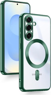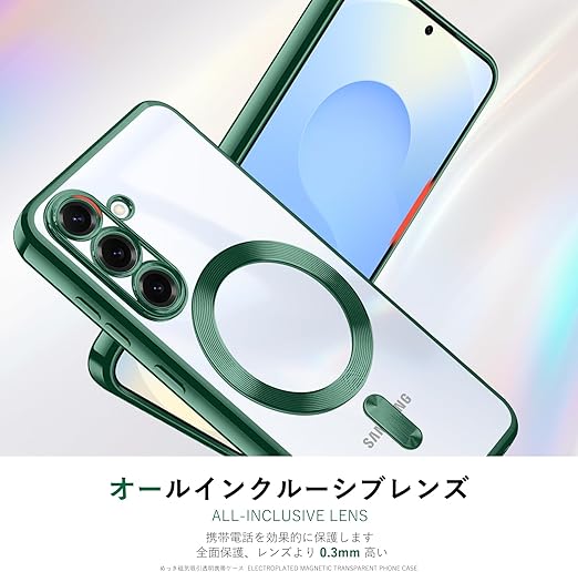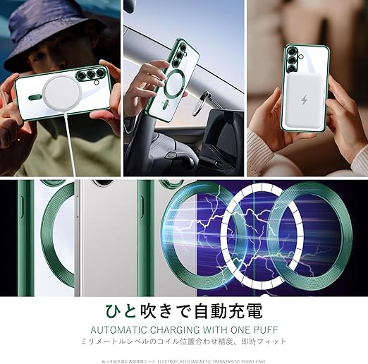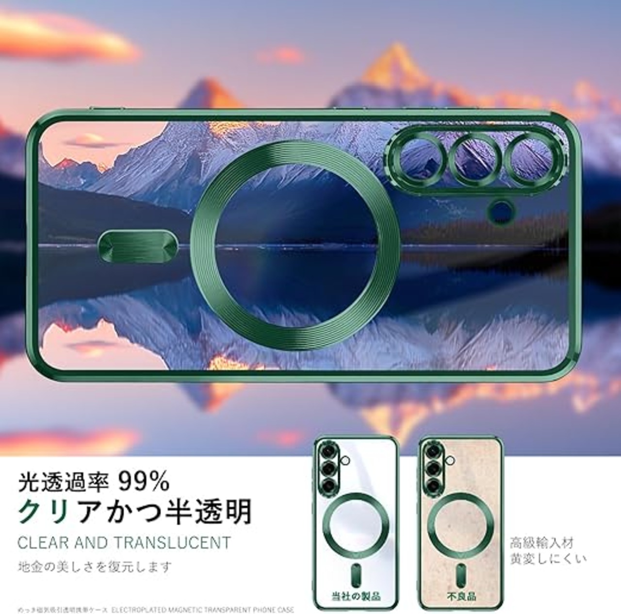 Galaxy S25 ケース MagSafe対応 メッキ加工 ギャラクシー S25 用マグネットケース 薄型 クリア 耐衝撃 スマホケース 超軽量 カバー ストラップホール付き 黄ばみにくい 柔軟 擦り傷防止 Zeunoen (グリーン) a