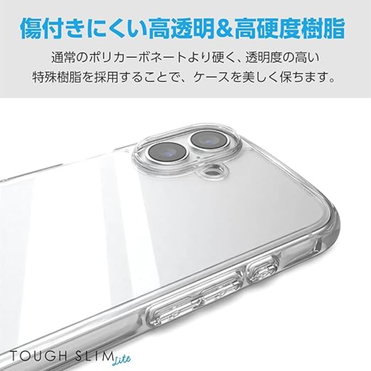 エレコム iPhone 16 ケース クリア 耐衝撃 衝撃吸収 ハイブリッド 薄型 軽量 ストラップホール付き ワイヤレス充電対応 全周エアークッション ストラップホルダーシート付 TOUGH SLIM LITE クリア PM-A24ATSLACR a