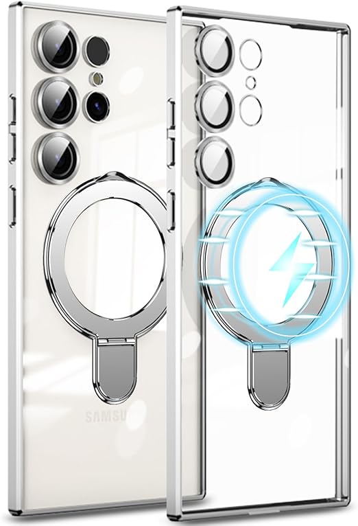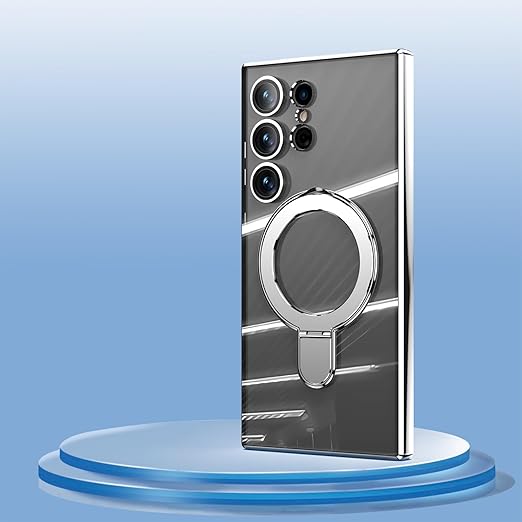 MuZiF Samsung Galaxy S25 Ultra 用 ケース リング付き MagSafe対応 クリア メッキ加工 カバー 車載ホルダー対応 多機能 レンズ保護 薄型軽量 耐衝撃構造 透明柔らかいTPU アイフォンS25 Ultra 用 磁気カバー ケース(Galaxy S25 Ultra,クリア) a