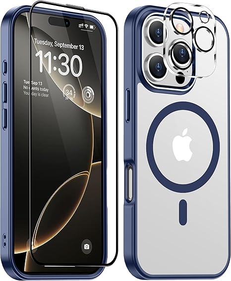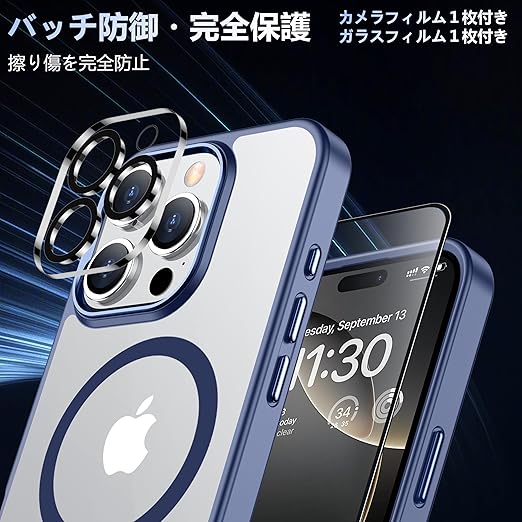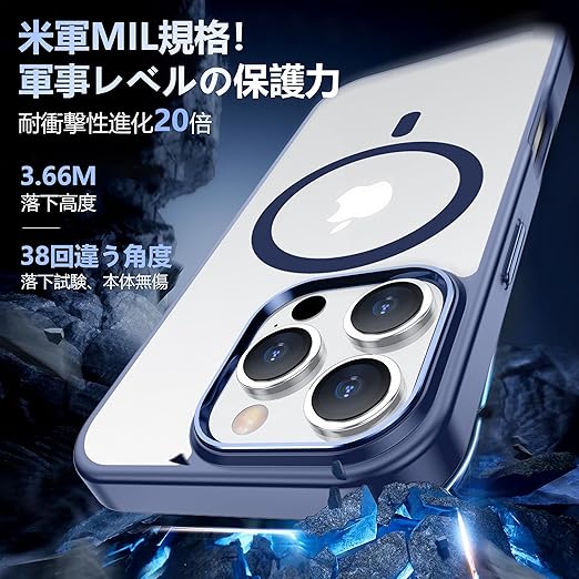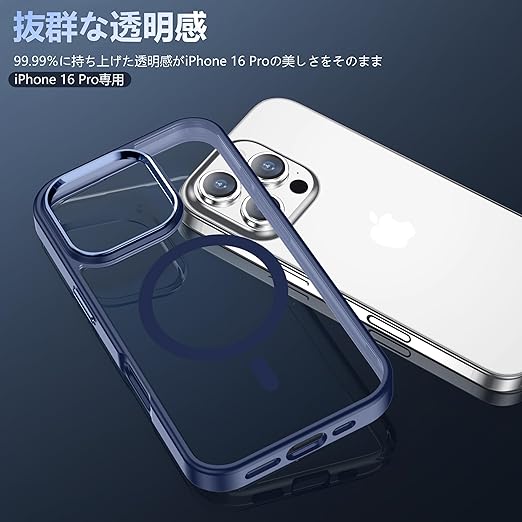 iPhone 16 Pro ケース ブルー Magsafe対応 カメラレンズ保護付き アイフォン16Pro ケース 米軍MIL規格 耐衝撃 ストラップホール付き 耐久性 黄変防止 いphone16 pro ケース ワイヤレス充電対応 あいほん16Pro ケース SGS認証 PC背面 スマホケース アイフォン16プロ カバー 青 6.3インチ a