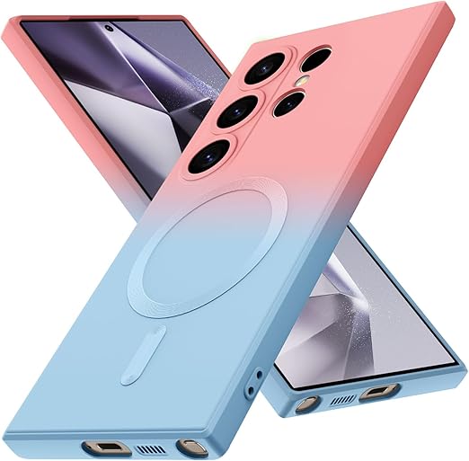 Galaxy S25 Ultra 用 ケース TPU 薄型 軽量 ケース 耐衝撃 マグネット搭載 ストラップホール付き スマホケース シリコン 背面ワイヤレス充電 黄変防止 すり傷防止 マグセーフ対応 人気 ギャラクシー S25 ウルトラ 用カバー ピンク/ブルー AYS-25-89 a