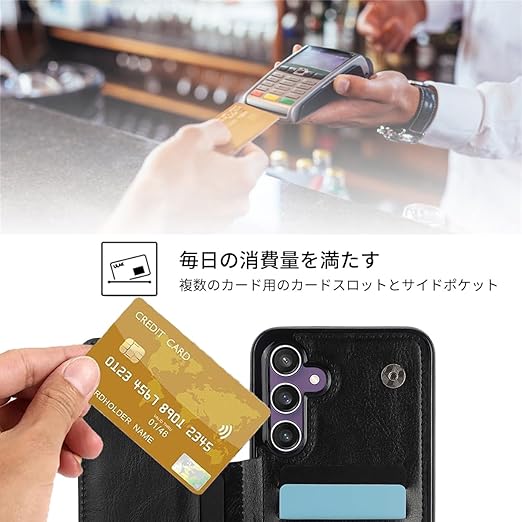 【財布型&収納】:ステルス式カードスロットは2枚のカードを安全に保管することができます(クレジットカード/ゲートカード/地下鉄カード/身分証明書/名刺/運転免許)& 2枚現金.