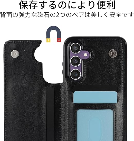 NKECXKJ Galaxy S25 ケース,ギャラクシーS25ケース galaxys25ケース ギャラクシーs25 用ケース スマホケース 携帯ケース カバー Case 純正 PUレザー 財布型カードホルター付き収納 スタンド機能 耐衝撃 カバーケース サムスンギャラクシーS 25 Samsung s25+5G レディース メンズ 6.2 インチ(ブラック) a
