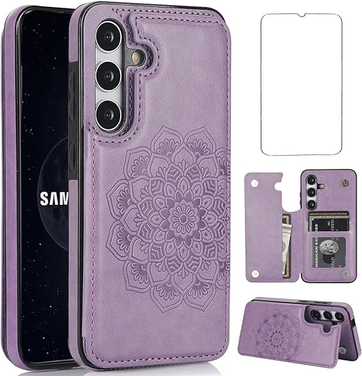 NKECXKJ Galaxy S25 ケース,ギャラクシーS25ケース galaxys25ケース ギャラクシーs25 用ケース スマホケース 携帯ケース カバー Case 純正 PUレザー 財布型カードホルター付き収納 スタンド機能 耐衝撃 カバーケース サムスンギャラクシーS 25 Samsung s25+5G レディース メンズ 6.2 インチ(パープル) a