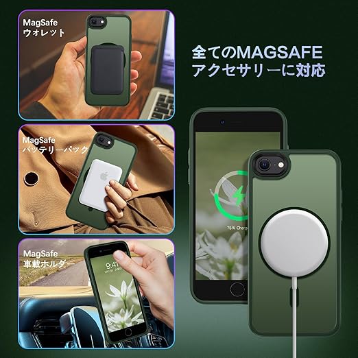 ★【MagSafe対応】iPhoneSE3/SE2/8/7ケースにマグネットを搭載し、MagSafeにも対応します。iPhoneを充電器に合わせやすくなっています、リラックスした生活に重宝する。