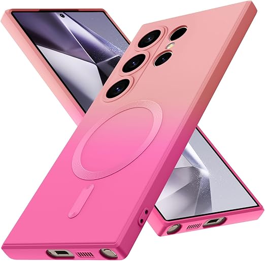 Galaxy S25 Ultra 用 ケース TPU 薄型 軽量 ケース 耐衝撃 マグネット搭載 ストラップホール付き スマホケース シリコン 背面ワイヤレス充電 黄変防止 すり傷防止 マグセーフ対応 人気 ギャラクシー S25 ウルトラ 用カバー ピンク/ホットピンク AYS-25-90 a