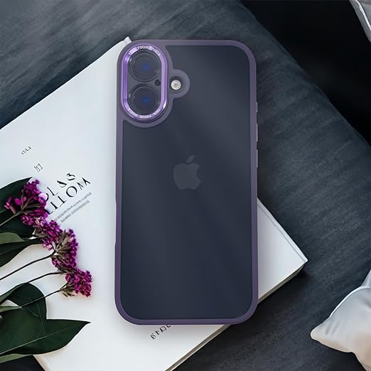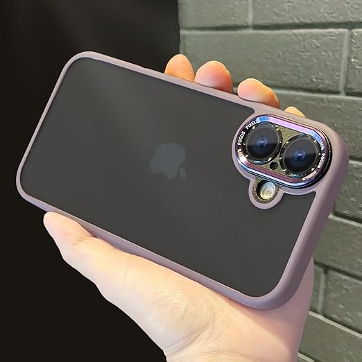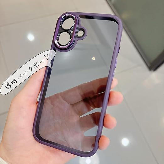 iyite iPhone 16 ケース、一体型カメラレンズ保護機能付き、[ミルグレード耐衝撃防御] 透明バックプレーン保護ケース、iPhone 16 用、パープル a