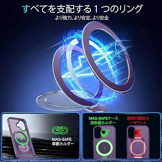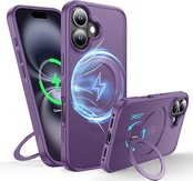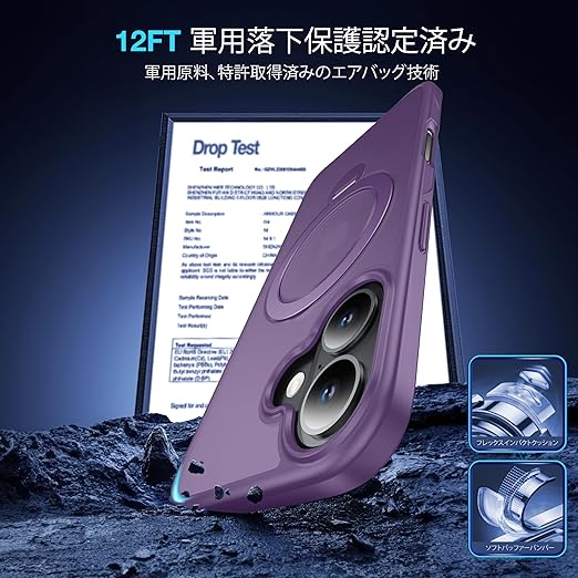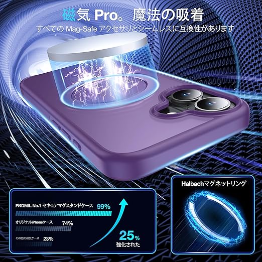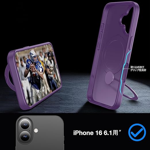 【米軍MIL規格・MagSafe対応】FNDMIL 360°回転 iPhone 16 用 ケース [滑り止めテクスチャ] [目に見えないスタンド]縦横両対応 シリコンフレーム 半透明マットハードケース アイフォーン16 用 ケース マグセーフ対応 ワイヤレス充電対応 薄型 (パープル) a