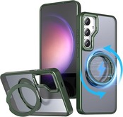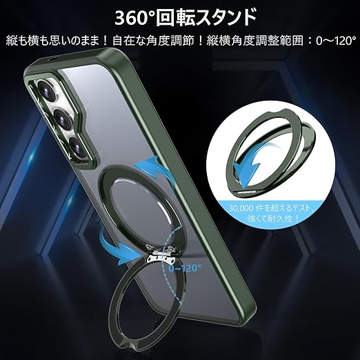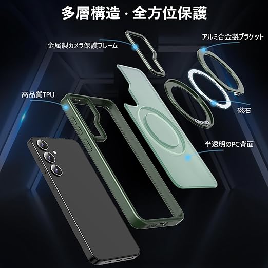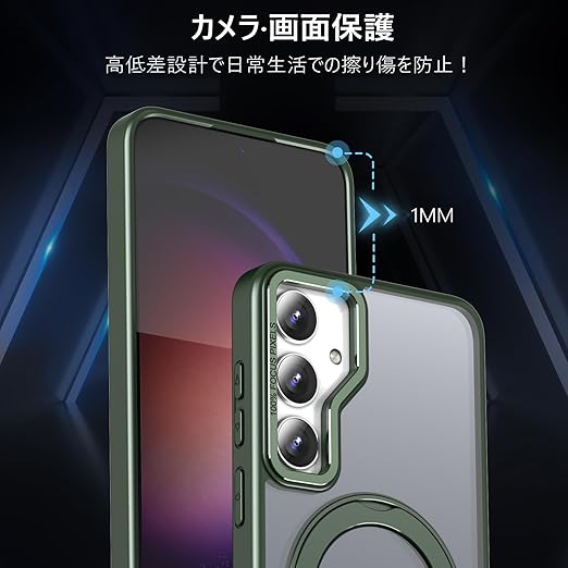 KWATUNG Galaxy S25 用 ケース Galaxy S24 用 ケース magsafe対応 ワイヤレス充電 耐衝撃 ギャラクシー s25 ケース 360°回転スタンド 縦横両対応 ギャラクシー s24 ケース マグネット搭載 SC-51E SCG25 用ケース 防指紋 米軍MIL規格 スマホケース S24 S25 用 6.2インチ 半透明 マット感 ダークグリーン a