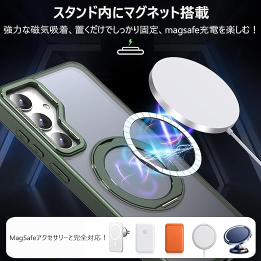 【Magsafe対応・多機能】Galaxy S25 / Galaxy S24 (SC-51E / SCG25)用 ケース(6.2インチ)。ワイヤレス充電やモバイルバッテリーなど全てのMagSafe用アクセサリーにもばっちり対応しています。こちらのGalaxy S24用ケースを使用すれば、充電ケーブルを抜き差しする必要がなくなり、利便性を体感していただけます。【ご注意:この製品はすべての Magsafe デバイスと互換性がありますが、Qi ワイヤレス充電には適していないため、購入する前にこの点を考