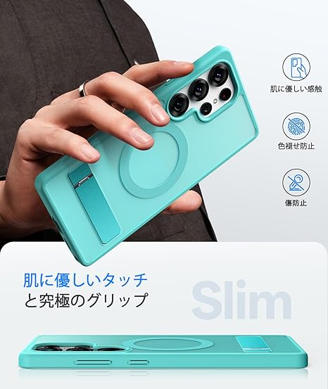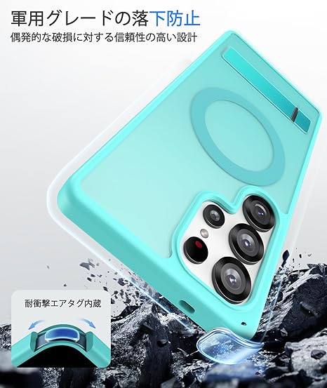 Vihibii Galaxy S25 Ultra ケース スタンド付き MagSafe対応 耐衝撃 マグネットケース ワイヤレス充電対応 米軍MIL規格 半透明感 マット 薄型 磁気吸着 ギャラクシー S25 ウルトラ スマホケース (ティール) a