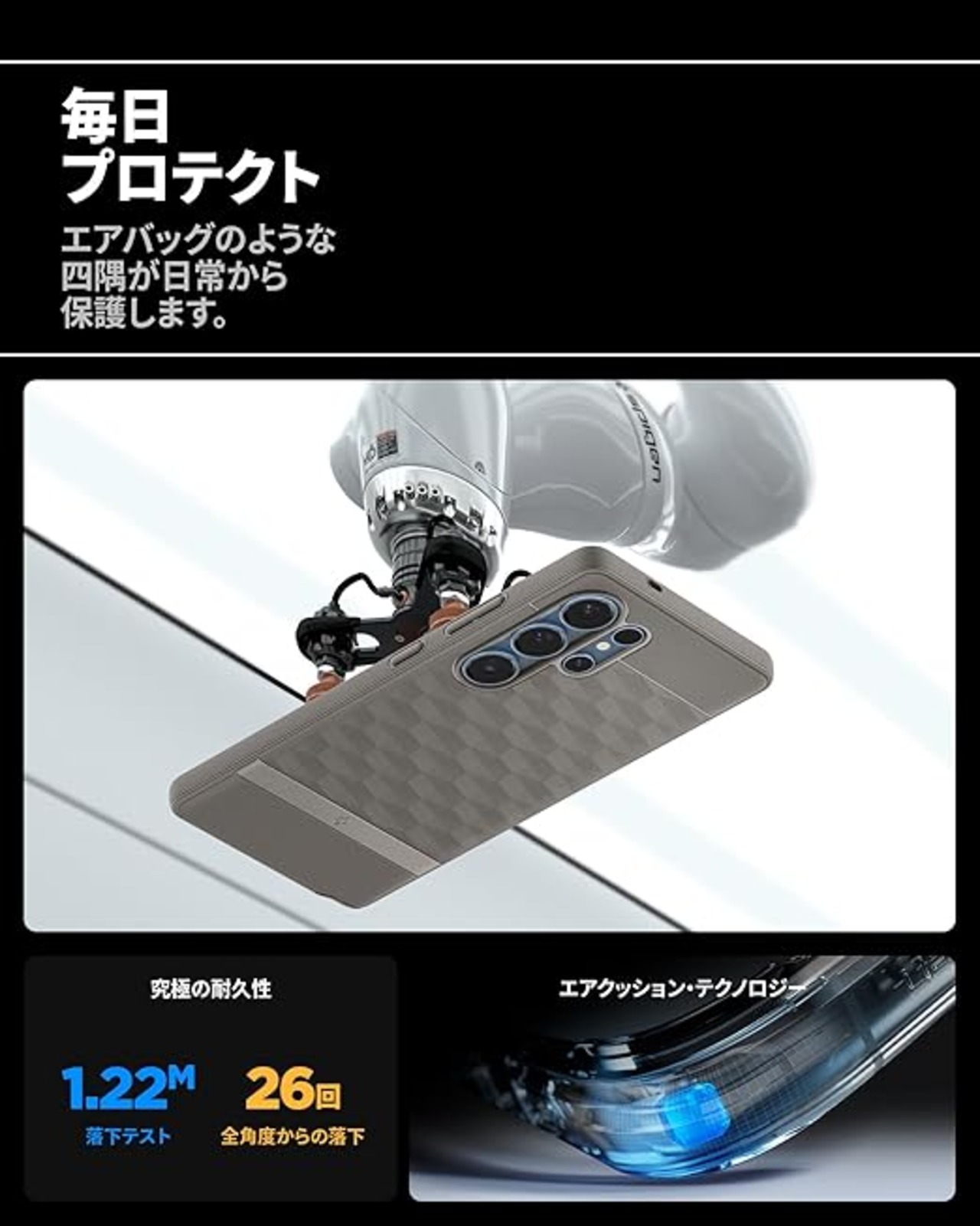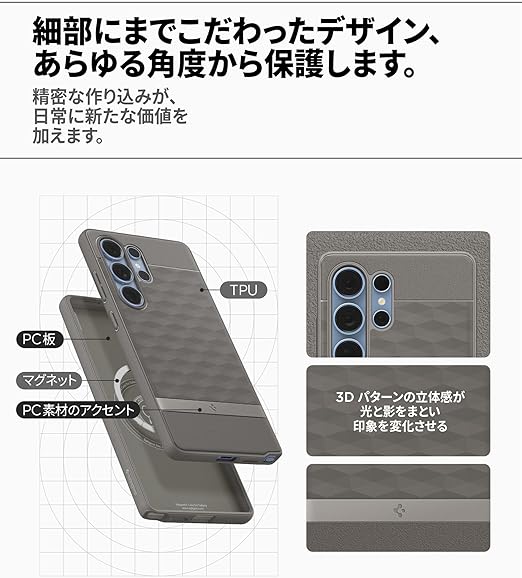 【強化されたグリップと保護力】 パララックス・マグケースは、優れたグリップ力と快適な操作感を実現します。ケース下部の革新的なデコバーデザインにより、スタイルと機能性を両立させ、Galaxyをしっかりと保護しながら、ファッショナブルな印象も与えます。