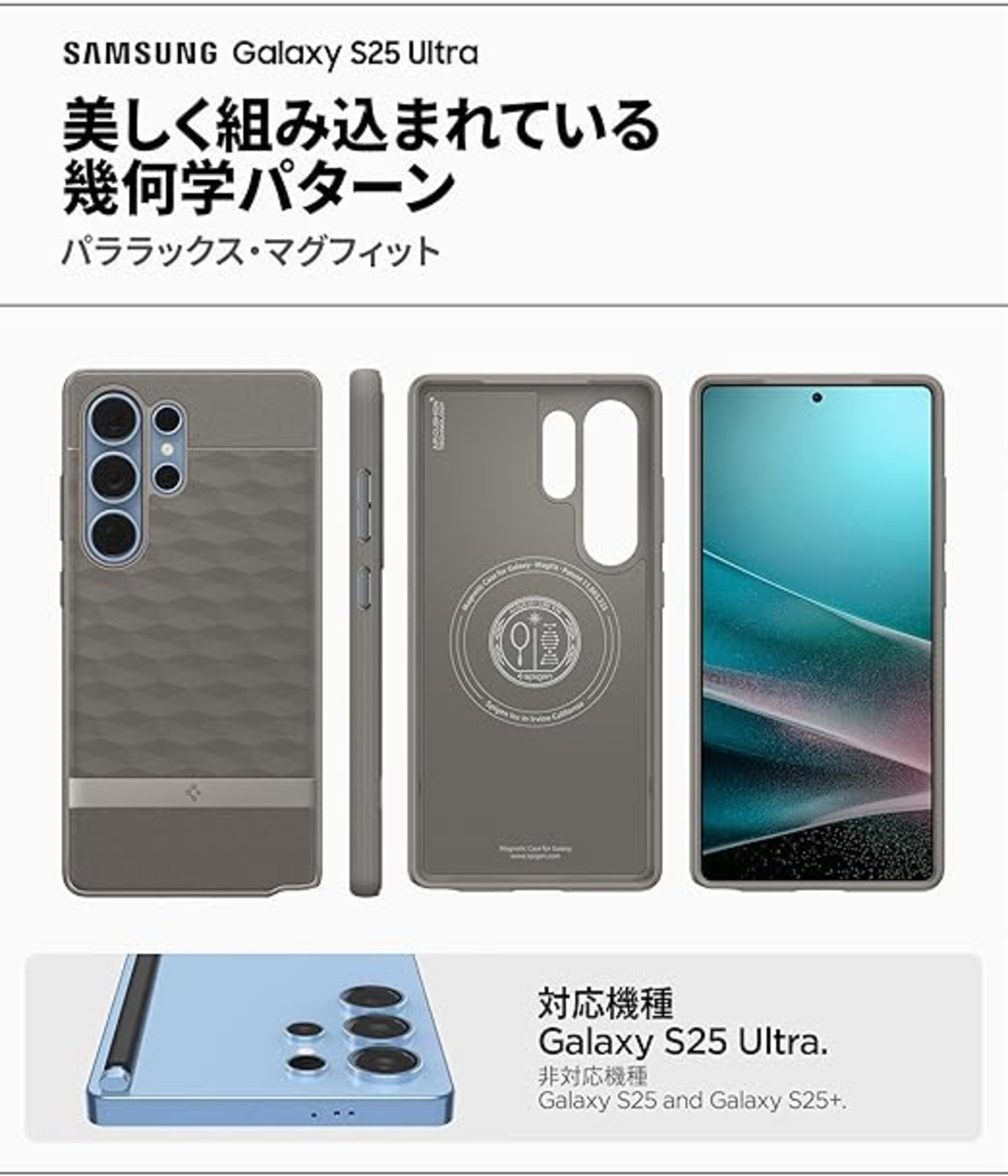Spigen Galaxy S25 Ultra ケース Magfit対応 立体ハニカムパターン 耐衝撃 グリップ ACS09055 (アッシュ・グレイ) a