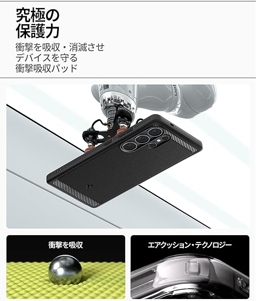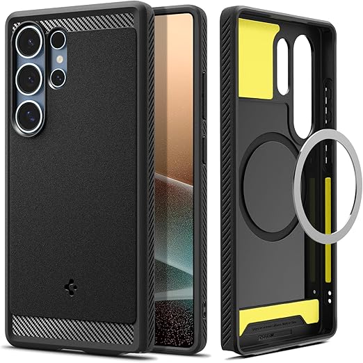 Spigen Galaxy S25 Ultra ケース Magfit対応 耐衝撃 TPU ソフト マット 米軍MIL規格 ラギッド・アーマー・マグフィット ACS08951 (マット・ブラック) a