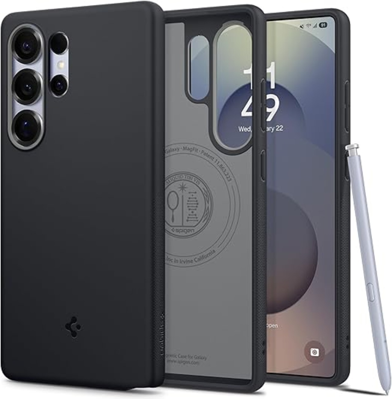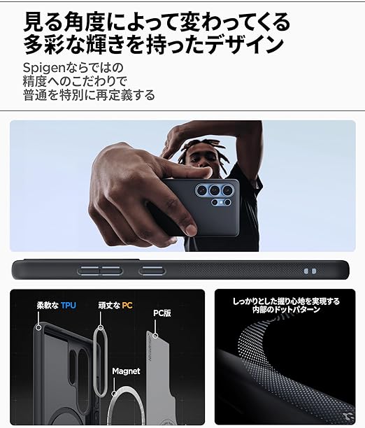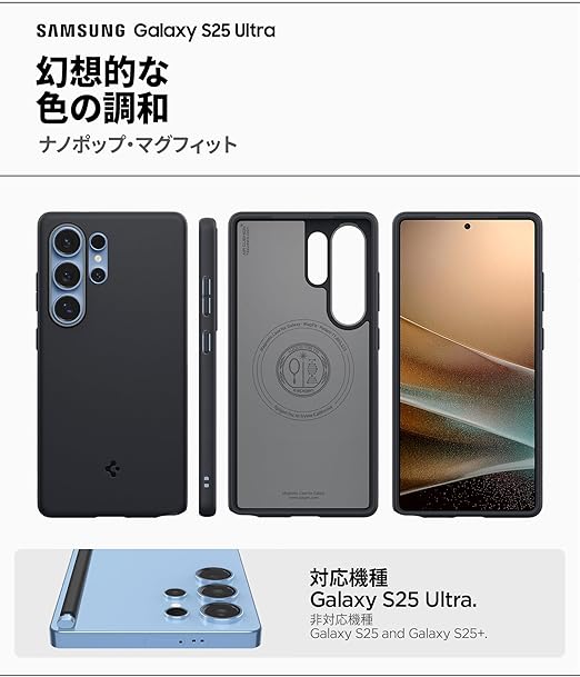 Spigen Galaxy S25 Ultra ケース Magfit対応 耐久性 ソフト ほこりが付きにくい素材 ツートンカラー ナノポップ・マグフィット ACS09057 (ブラック・セサミ) a