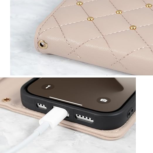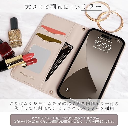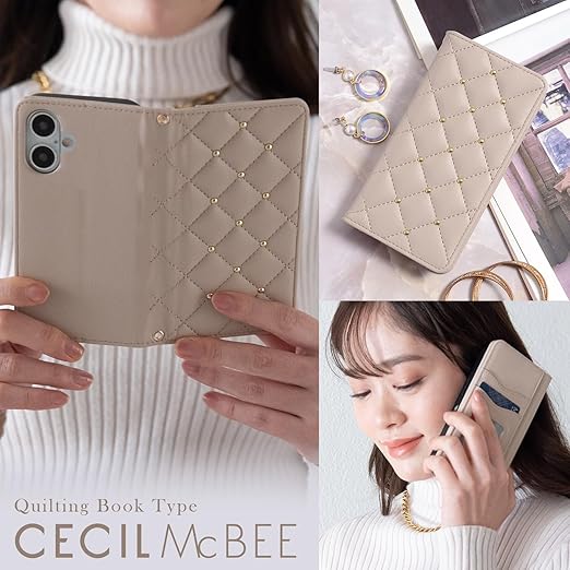 【 CECIL McBEE 正規品 】 iPhone 16 ケース 手帳型 ミラー付き セシルマクビー 「 キルティンク? 手帳ケース 」カード収納 6.1インチ アイフォン16 iPhone16 用 ブランド スマホケース (ベージュ, iPhone 16) a