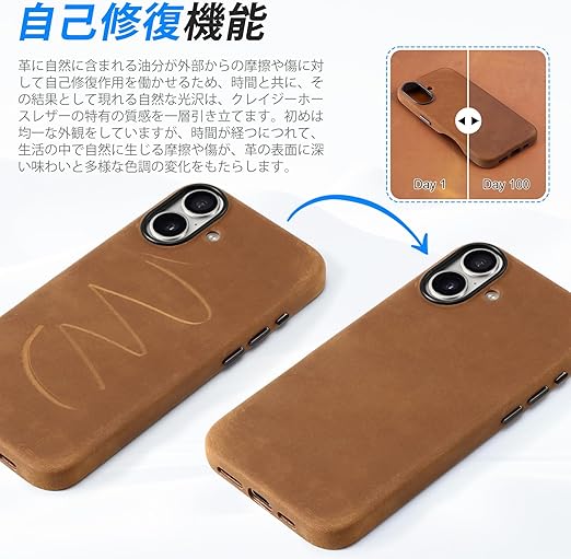 SHIELDON iPhone 16 Plus 対応 ケース 本革ベーシックケース ワイヤレス充電対応 磁気充電可 背面保護 あいふぉん 16Plus対応ケース クレイジーホースレザー スマホカバー 薄型 軽量 滑り止め 指紋防止 耐久性 カメラ保護 携帯便利 アイホン16 プラス 対応 スマホケース 2024年発売 6.7インチ対応 5G クレイジーホース-ブラウン a