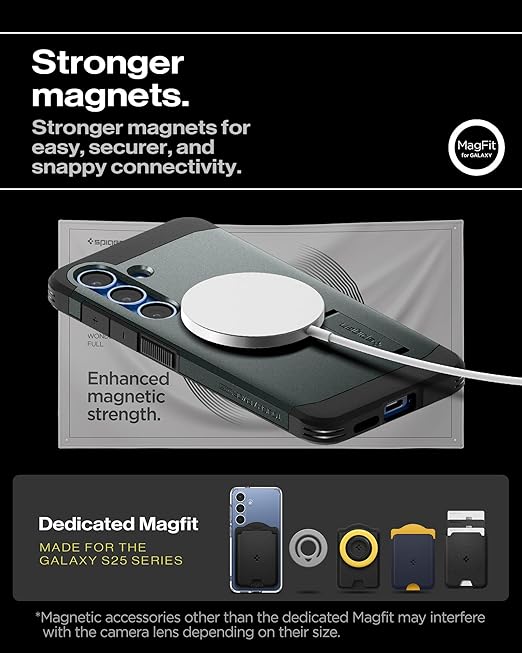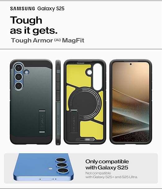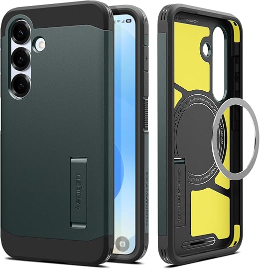 Spigen Galaxy S25 ケース Magfit対応 マグネット搭載 スタンド付き マット 耐衝撃 米軍MIL規格 タフ・アーマー(AI)・マグフィット ACS09010 (アビス・グリーン) a