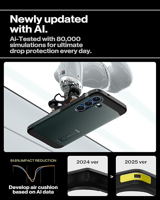 【AI技術で極めた保護能力】最先端のAI技術を活用し、デバイスを最も効率的かつ徹底的に保護できる構造を計算しました。今まで築き上げてきたSpigenの技術とAIの計算で生み出した、スマホケースの最適解を直接ご経験ください。