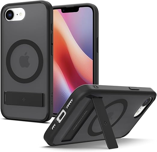Spigen iPhone 16e ケース iPhone SE4 ケース 【MagSafe】アクセサリー対応 マグネット搭載 クリア スタンド付き ストラップホール 米軍MIL規格 ウルトラ・ハイブリッドS・マグフィット ACS09149 (フロスト・ブラック) a