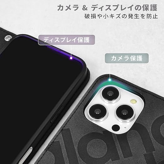 【 New Balance正規品 】 iPhone 16 Pro ケース 手帳型 カード収納 ブランドロゴ おしゃれ「スタンプロゴスエード調」 ニューバランス アイフォン16プロ iPhone16Pro 用 ロゴ型押し スマホケース (ブラック, iPhone 16 Pro) a