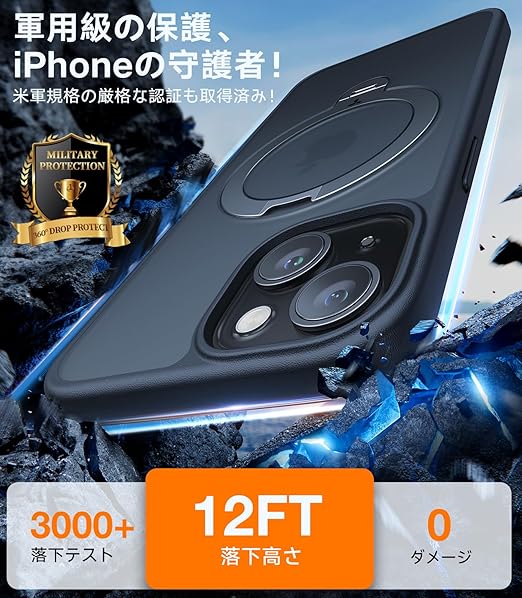 【カチッ!2025新開発・安定性】TORRAS iPhone 15 用 ケース MagSafe対応 縦横両対応 強磁力リング マグネット搭載 高耐久性 黄変防止 ワイヤレス対応 米軍規格 耐衝撃 指紋防止 アイフォン15 ケース UPRO Ostand Spin ブラック a