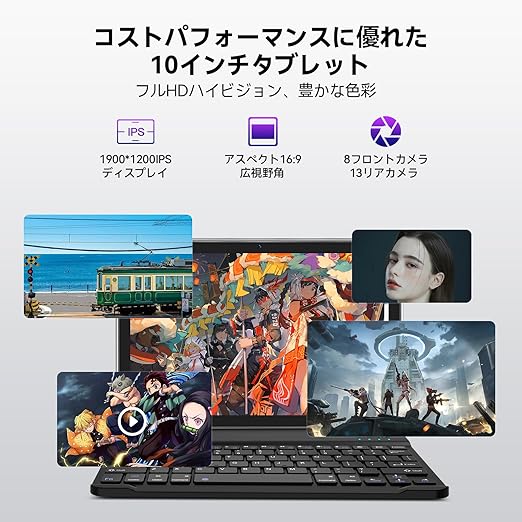 タブレット2025新登場 2in1タブレットAndroidタブレット10インチWiFi モーデル16GB(8+8)RAM 128GB ROM 1TB拡張 5G+2.4GWiFi 8コアCPU 7000mAhバッテリー 1280*800ディスプレイ 13MP+8MP デュアルカメラ BT5.0/ GPS/GMS,PSE認証済/オンライン授業/無線投影/子供用 ギフトに最適 日本語取扱説明書 a