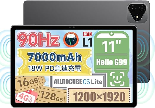 ALLDOCUBE iPlay60 Pro タブレット11インチ 90Hz高リフレッシュレート 顔認識 クアッドスピーカー 8コアCPU Helio G99 タブレット WidevineL1 Netflix対応 1200×1920 WUXGA解像度 16GB+128GB+1TB拡張 7000mAh 18W PD急速充電 ALLDOCUBE OS Lite 4G LTE GPS BT5.2-グレー a