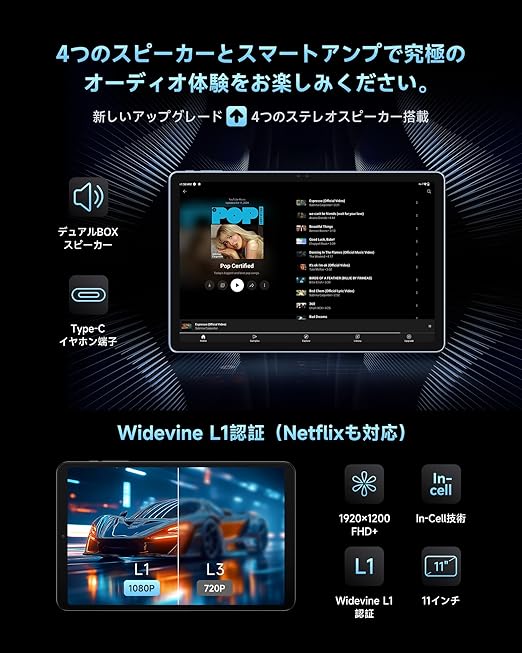 【1月21日追記:OTAでスピーカーの音量問題を改善】スピーカーの音量に問題がある場合は、バージョン“T1107_B14_V1.5.3_20250110”に更新してください。【専用ケース】専用ケースも販売しております。タブレットと同時に購入すると、ケースが割引となります。ケースASIN:B0DSBYHPC7。