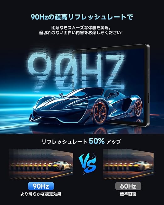 【90Hz高リフレッシュレートタブレット】90Hzの高リフレッシュレートで、滑らかな視覚体験を実現。どんな光条件下でも、鮮やかでクリアな画像をお楽しみいただけます。1200×1920ピクセ