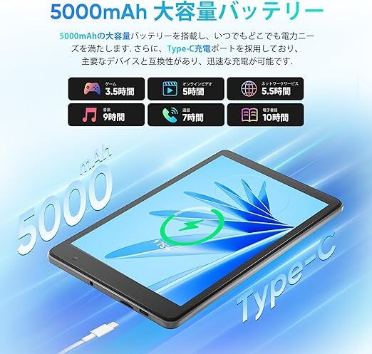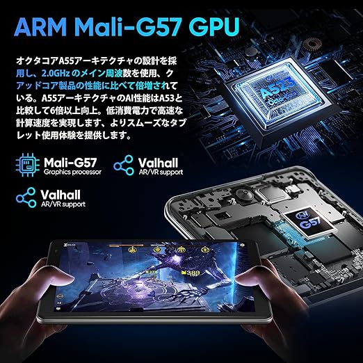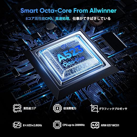 【8コア+2.0Ghz CPU+12GB+64GB+1TB拡張】このAndroid 14 タブレットNPad MiniはAllwinner A523プロセッサは、オクタコアA55アーキテクチャの設計を採用し、2.0GHz のメイン周波数を使用、クアッドコア製品の性能に比べて倍増されている。A55アーキテクチャのAI性能はA53と比較して6倍以上向上。低消費電力で高速な計算速度を実現します、よりスムーズなタブレット使用体験を提供します。AnTuTu のスコアは 315234 ポイントに達します。1
