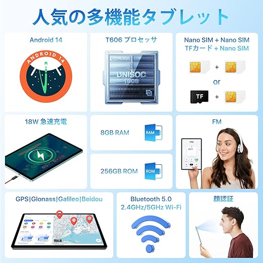 【Android 14&高性能8コアCPU】UMIDIGI G9 TAB android タブレットはAndroid 14 システムを採用し、8 コアプロセッサを搭載し、マルチタスキングや複雑なタスクをスムーズに処理できます。このandroid タブレットはデータ処理速度と操作性などあらゆる面でアップグレードされて、基本的な流暢さを改善し、バッテリー寿命を向上させました。
