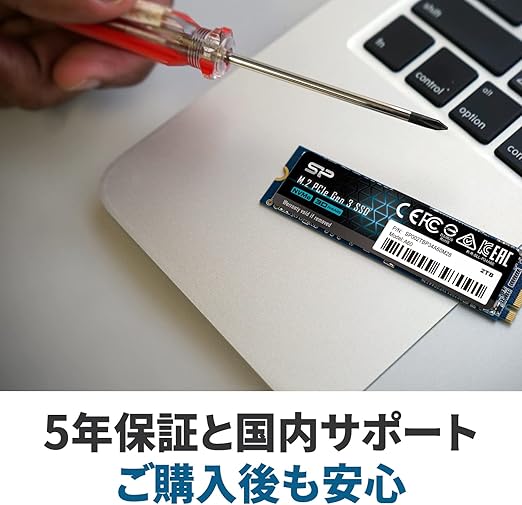 安心の5年保証と国内サポート。※保証期間(5年間)およびTBW値(300TB)範囲内でのご使用に対する保証となります。その他の保証規定は下記説明欄をご確認ください。
