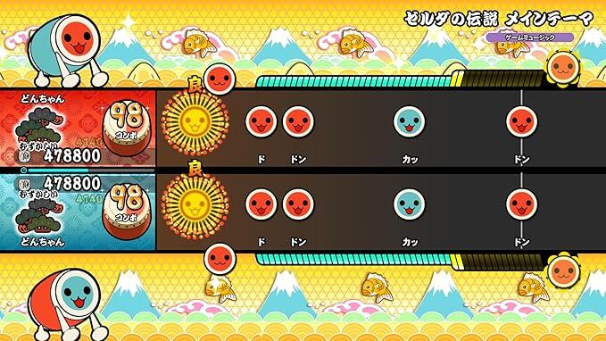 相棒のどんちゃん、オミコシティで出会ったくもきゅんと一緒に太鼓マスターを目指そう!収録曲は「紅蓮華」「Feel Special」「夜に駆ける」など前作を超える76曲を収録!苦手な部分を繰り返し練習してスキルアップできる「上達サポート」や、世界中のプレイヤーと演奏バトルを楽しめる「オンラインランクマッチ」!他にも、おもちゃでデッキを組んで戦う「ドンカツおもちゃ大戦」、4人でライブ