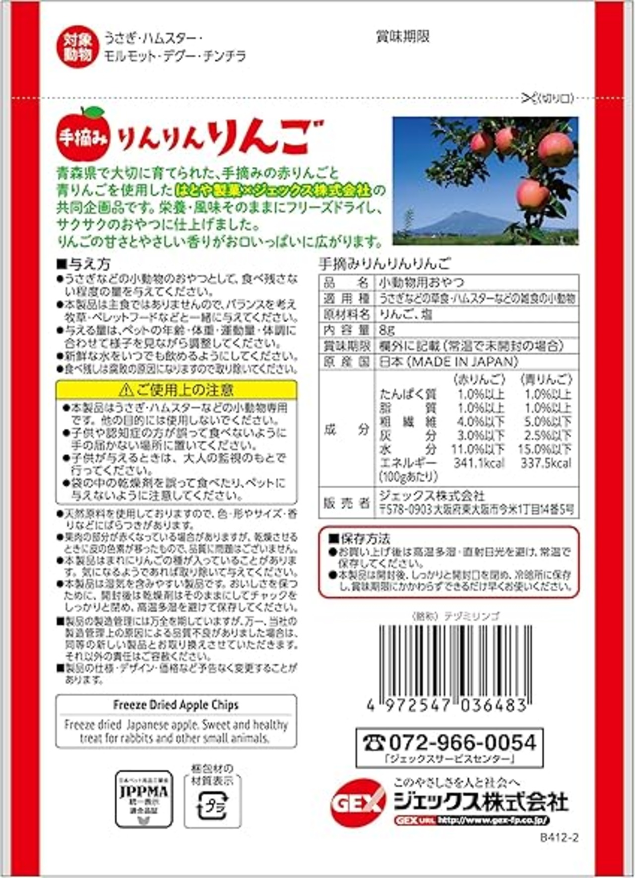 ジェックス 手摘みりんりんりんご 青森県産りんご 保存料・着色料・砂糖不使用[うさぎ・小動物用おやつ] 8グラム (x 1) a