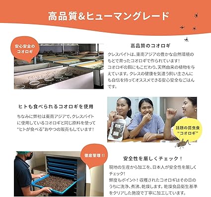 早稲田大学発のベンチャー企業が考案し、開発しています。実際の論文をもとに野生環境化のクレステッドゲッコーの食性をもとにレシピ設計をしています。